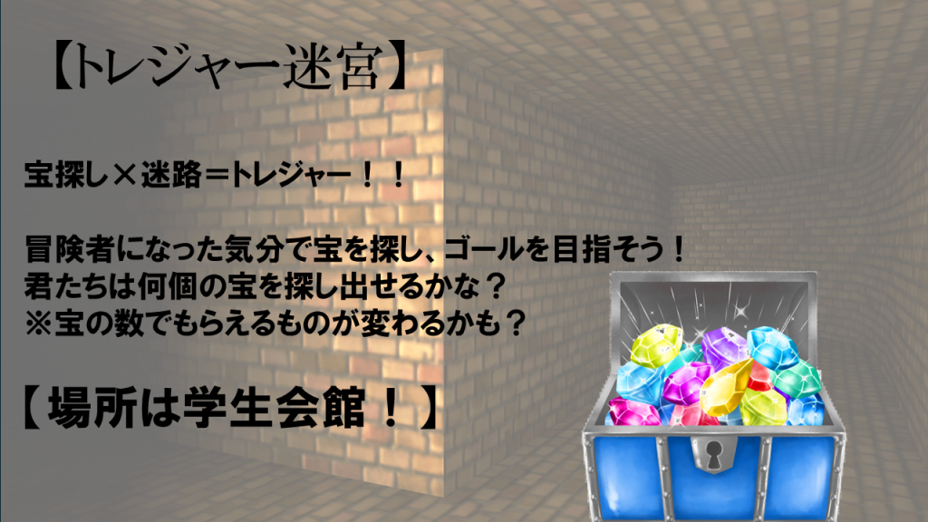 宝探しとめいろを掛け合わせた実行委員会渾身の企画です! 是非みなさんお楽しみください!!